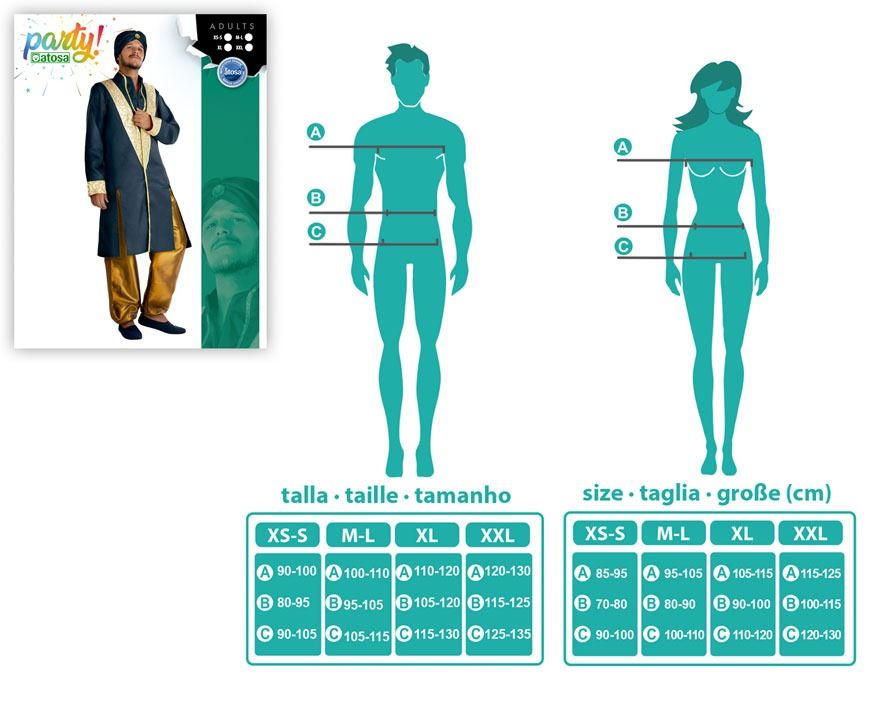 Disfraz talla adulto. Contenido del pack: tocado, chaqueta y pantalón. Este increíble traje es perfecto para un hindú, así que llévate nuestro disfraz de hindú dorado para hombre y déjate llevar por los cuentos más famosos de la India. El traje se compone de un tocado azul con dorado, un chaquetón azul marino con franjas en dorado y un pantalón dorado a juego.